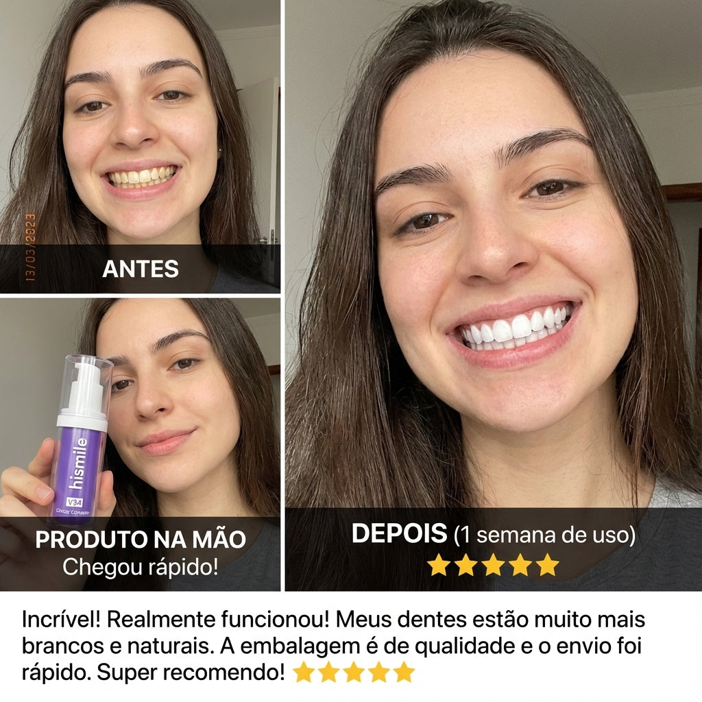 - "Me dejó los dientes más blancos desde el primer uso. Realmente funciona." Rita Santos