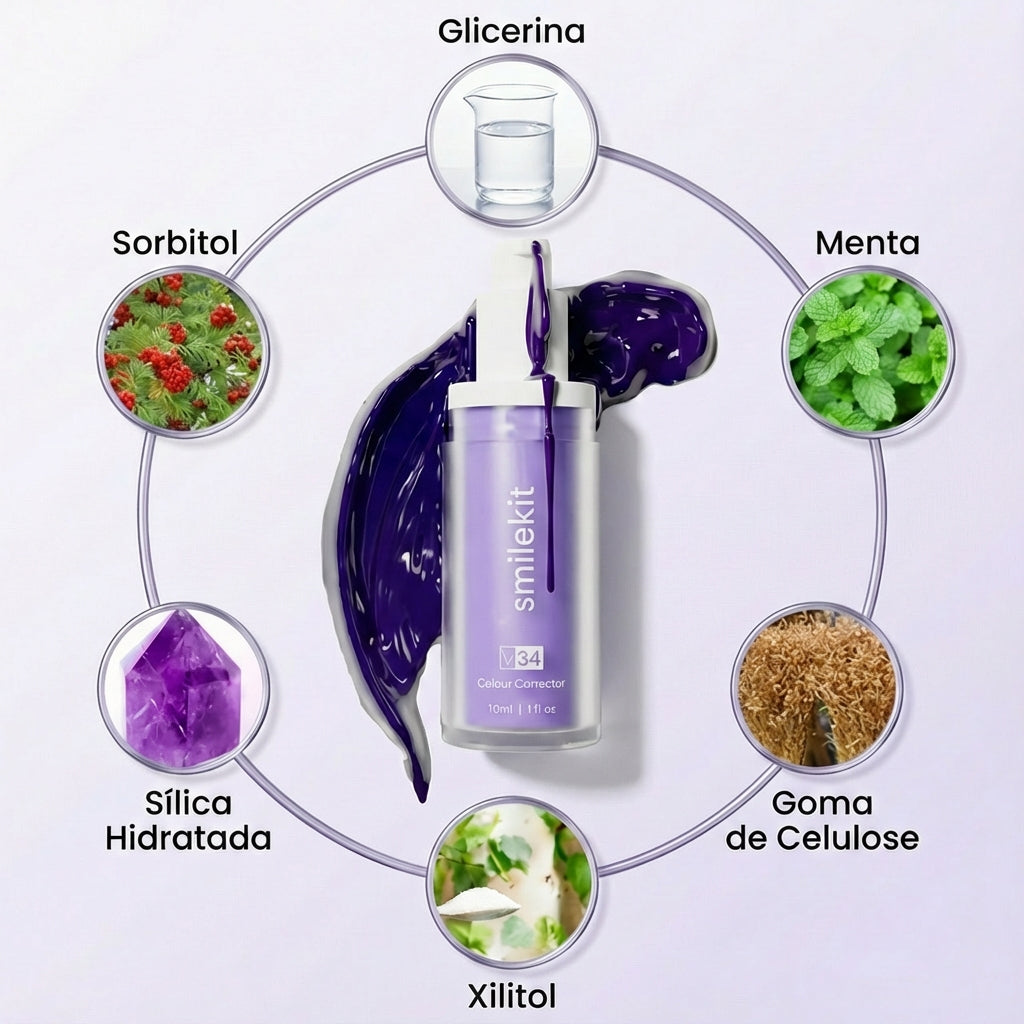 La combinación de dos tintes V34 ayuda a eliminar cualquier tono amarillento, dejando tu sonrisa más brillante y libre de residuos.