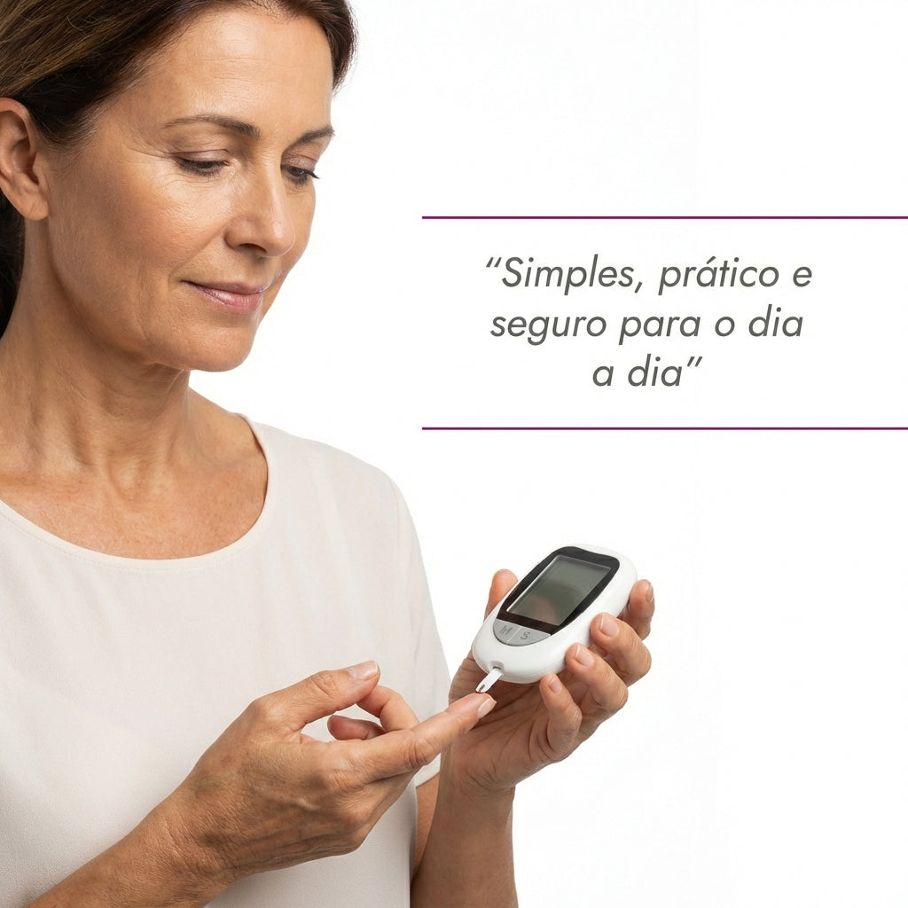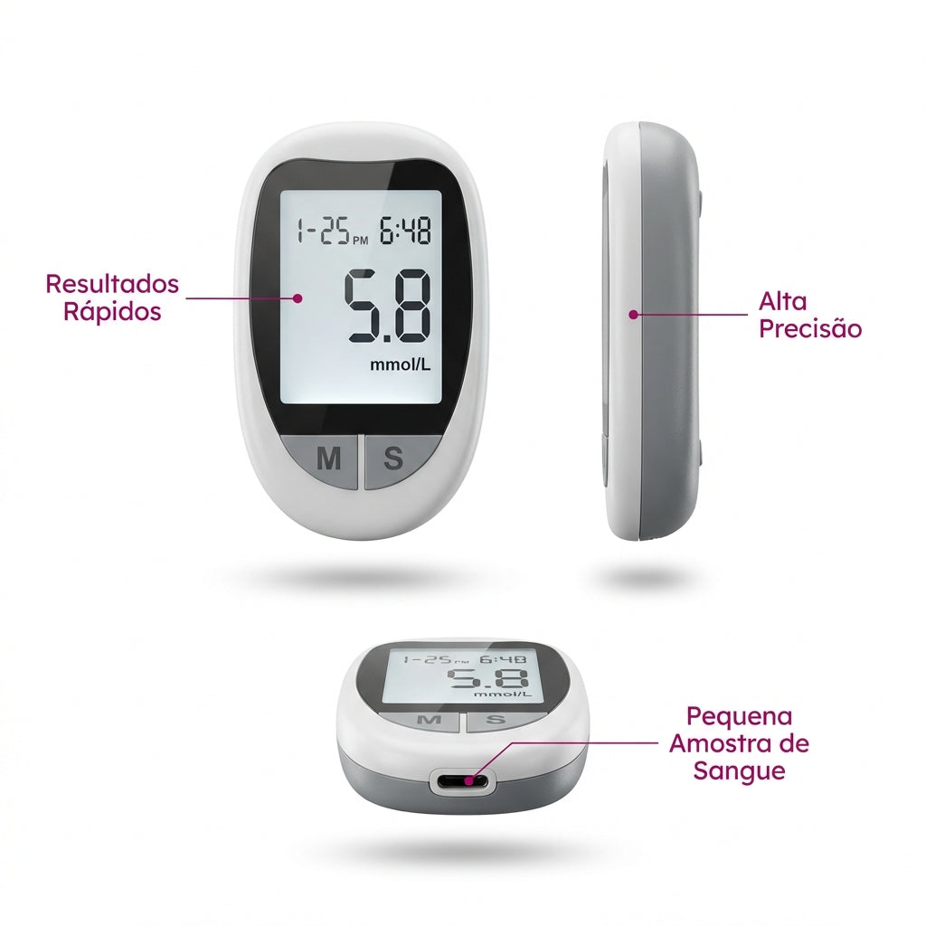 O medidor de glicose foi desenvolvido para oferecer resultados rápidos e altamente precisos com apenas uma pequena amostra de sangue. Compacto, intuitivo e moderno, garante uma monitorização eficaz no dia a dia, proporcionando maior segurança e tranquilidade.